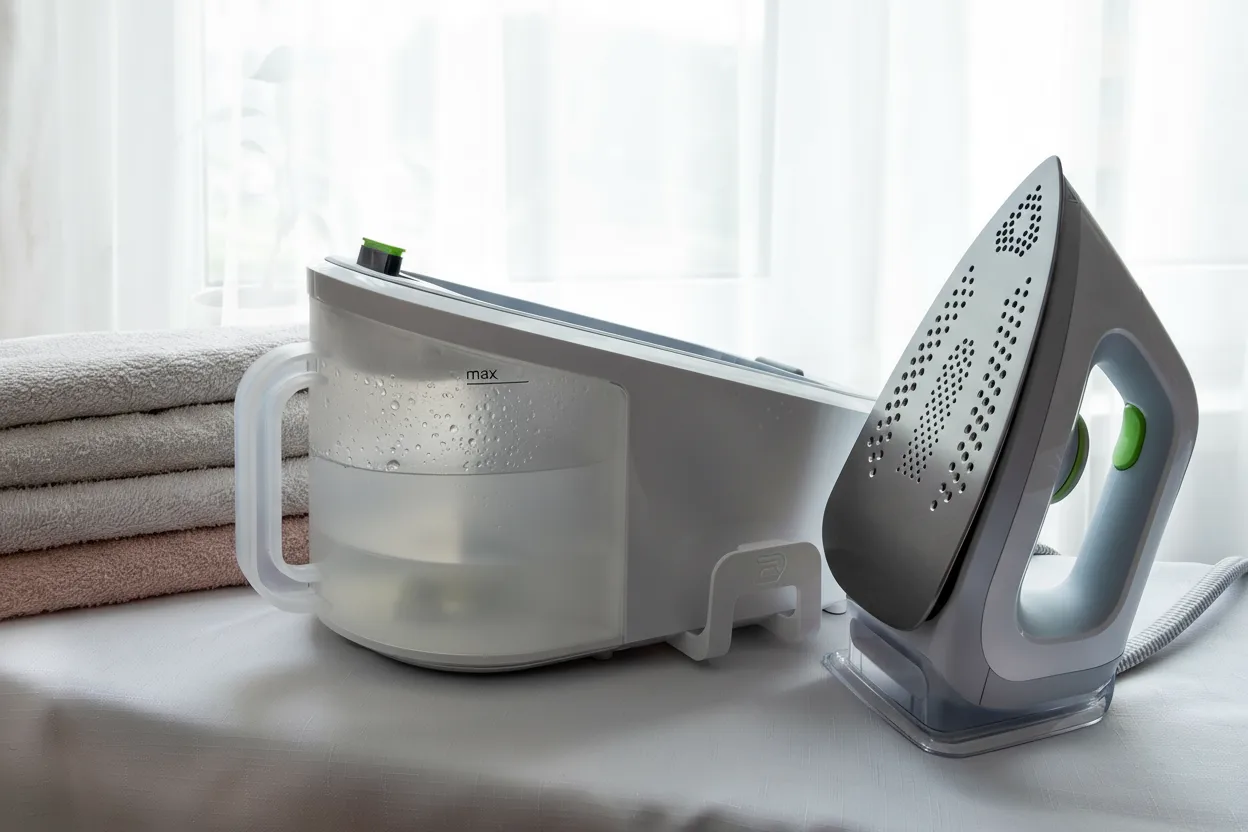 نصيحة الخبراء: استخدم خليط 50/50 من مياه الصنبور والمياه المقطرة. يوفر التوازن المثالي بين الحماية من الكلس و الحفاظ على المكواة، وهو ما توصي به معظم الشركات المصنعة.